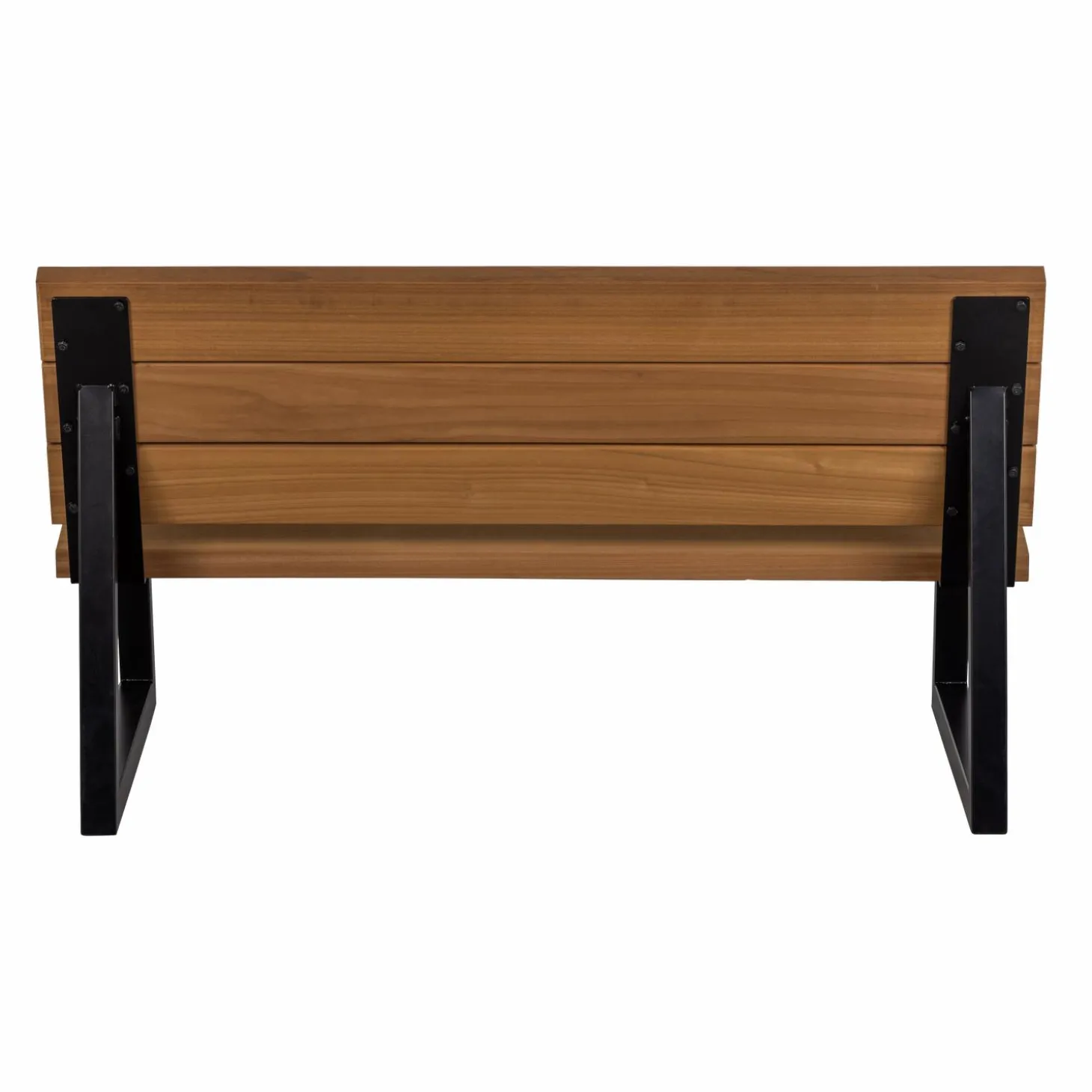 Het stijlvolle design van deze tuinbank kenmerkt zich door de mooie combinatie van natuurlijk hout en zwarte metalen poten. De luxe zwarte poten zorgen voor een modern accent dat mooi contrasteert met het warme naturel hout. De bank past uitstekend in verschillende tuinstijlen. Door de tijdloze vormgeving blijft het ontwerp jarenlang mooi en actueel.