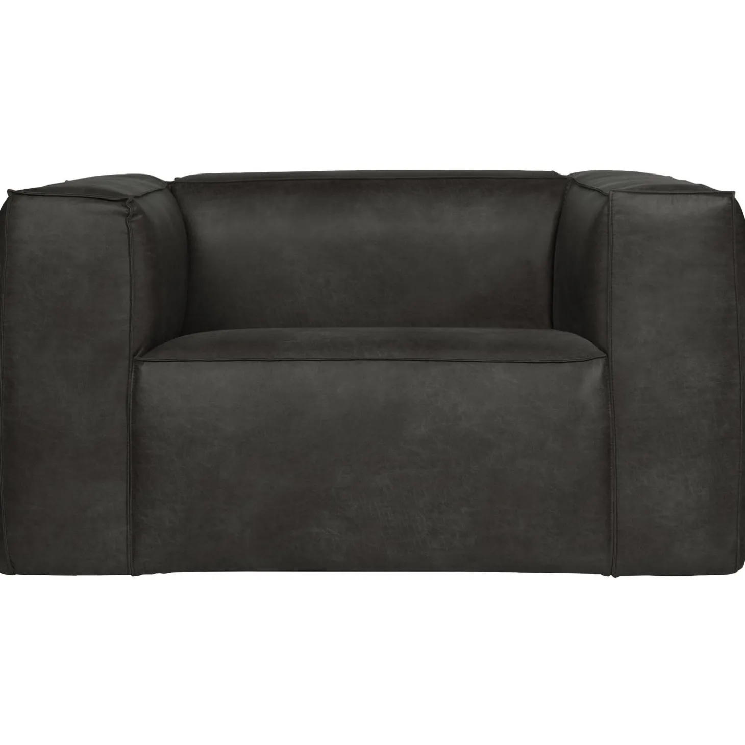 Bean fauteuil (hxbxd) 74x146x98 cm heeft een zithoogte van 45 cm, een zitbreedte van 85 cm en een zitdiepte van 65 cm. De armleuningen zijn 74 cm hoog en 32 cm breed. Dit geeft de fauteuil zijn robuuste uiterlijk.