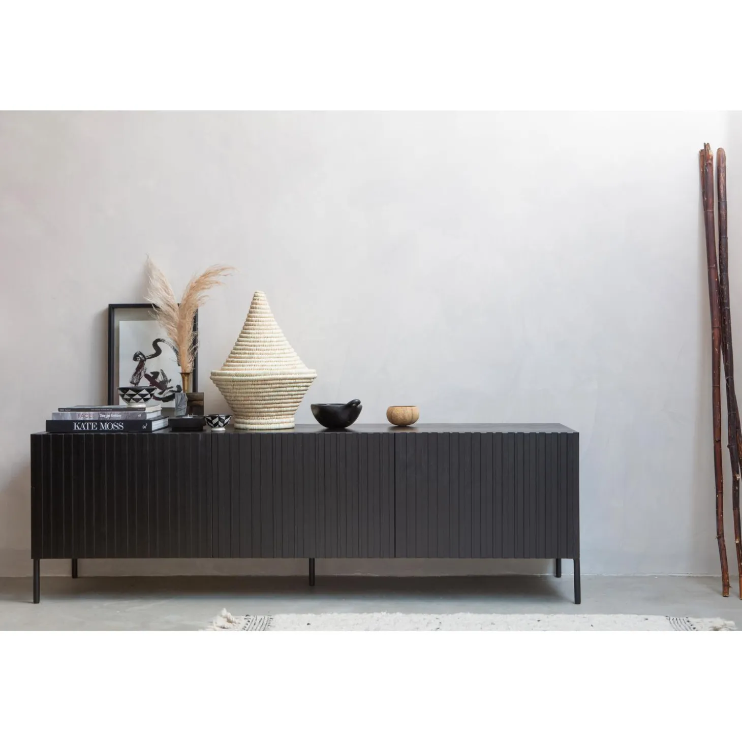 Hot WOOOD Grand Gravure Tv Meubel Grenen Zwart