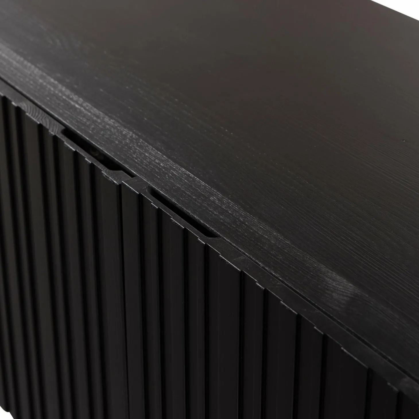 Het Grand Gravure tv-meubel maakt deel uit van de stijlvolle Gravure-serie. Dit robuuste meubel heeft een modern en tijdloos design en krijgt dankzij het gebruik van zwart grenenhout een warme uitstraling. Achter elke deur zijn kabeldoorvoeren verwerkt, zodat snoeren netjes en onopvallend weggewerkt kunnen worden. Het interieur is uitgevoerd in gelamineerd spaanplaat. De deuren zijn voorzien van een verfijnd lijnenspel en uitgerust met een soft-close systeem voor een rustige en veilige sluiting.