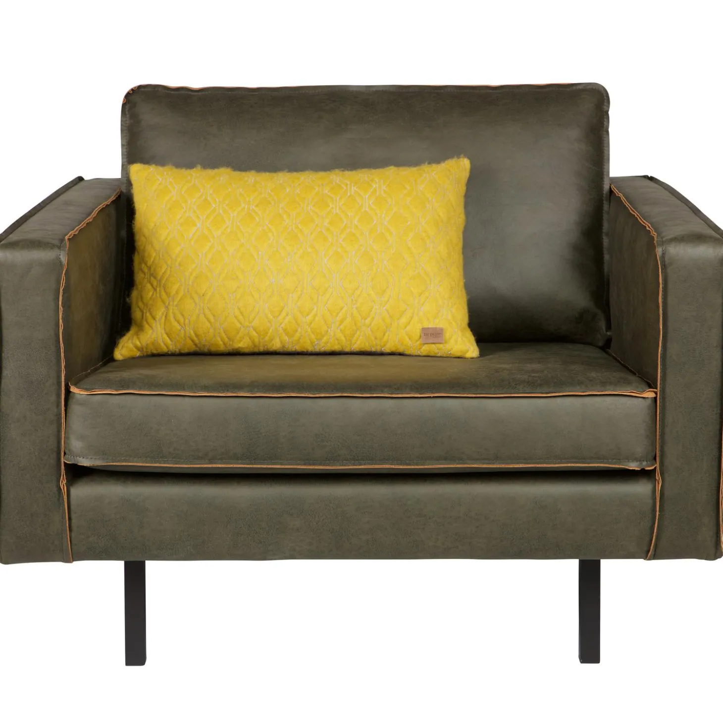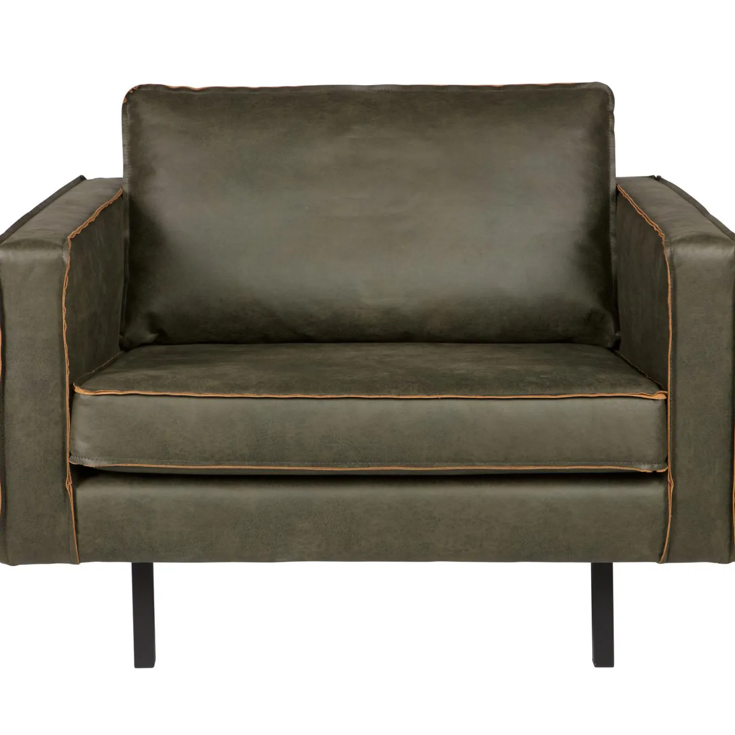 De zitmeubelserie Rodeo van het merk WOOOD is modern, stoer en eigentijds. Deze 1,5-zits fauteuil/loveseat is royaal en beschikt over een stoere stofRecycle leer. Door hetslanke frame en losse kussens toont de fauteuil subtiel in de living.