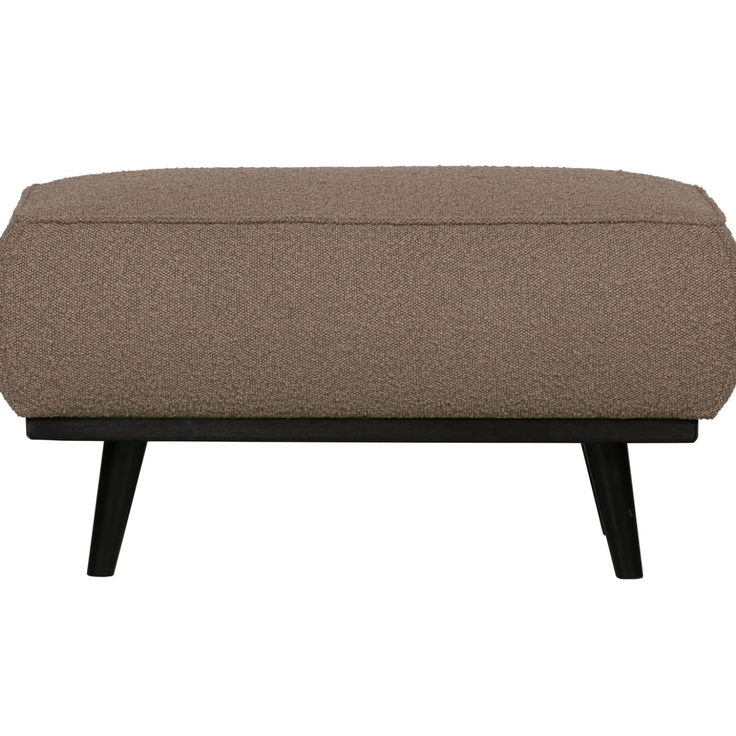 Deze luxe hocker op poten is onderdeel van de serie Statement en past perfect bij de fauteuil en banken statement uit de collectie van WOOOD. De serie statement biedt een goede basis voor meerdere woonstijlen. Het design van Statement is basic, maar valt wel op. Deze hocker zit heerlijk comfortabel en is bij de bank een perfect loungegedeelte. Deze uitvoering is voorzien van een zachte trendy bouclé stof in de kleur nougat. De stof is super aaibaar en brengt een warme sfeer in huis. De stof bouclé heeft een volle zware kwaliteit en is geschikt voor intensief gebruik.