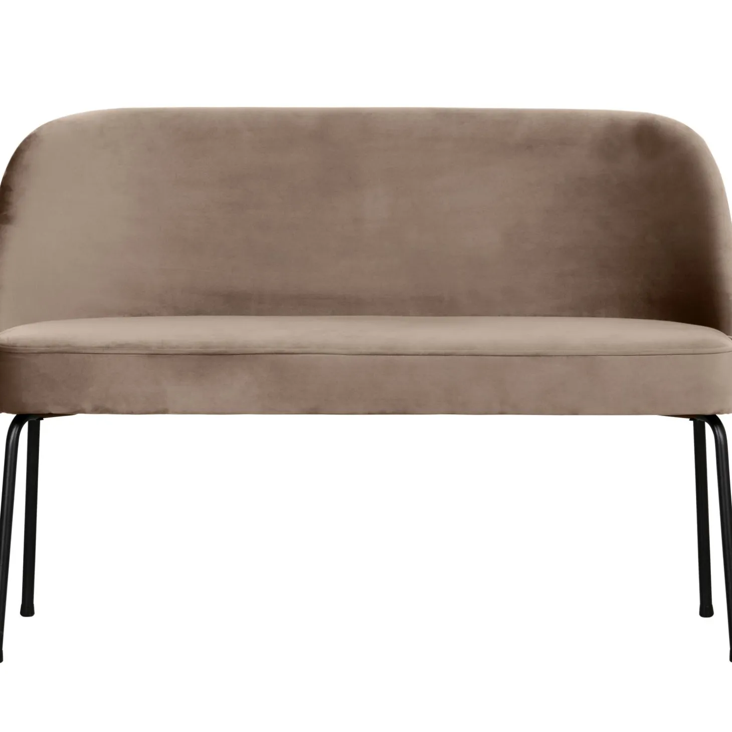 Lang tafelen was nog nooit zo relaxed en fijn als met deze Vogue eetbank uit de nieuwe collectie van WOOOD!De eetbank zit super comfortabel (stevige zit) en de zachte velvet stof en vriendelijke ronde vormen maken deze trendy eetbank tot een sieraad voor het interieur van nu. De poten zijn van zwart metaal.Door de warme kleur en het slanke ontwerp is de bank makkelijk te combineren met andere meubels.