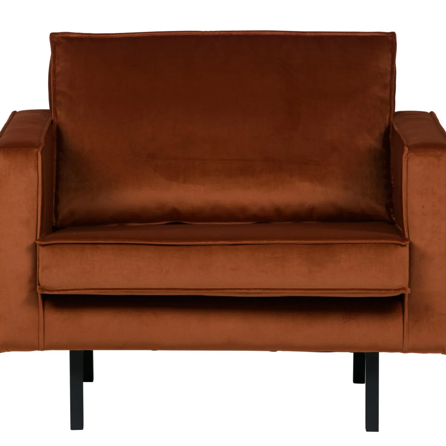De zitmeubelserie Rodeo in velvet stof bestaat uit deze fauteuil/loveseat, een 3-zits bank, een 2,5-zits bank en daybed.