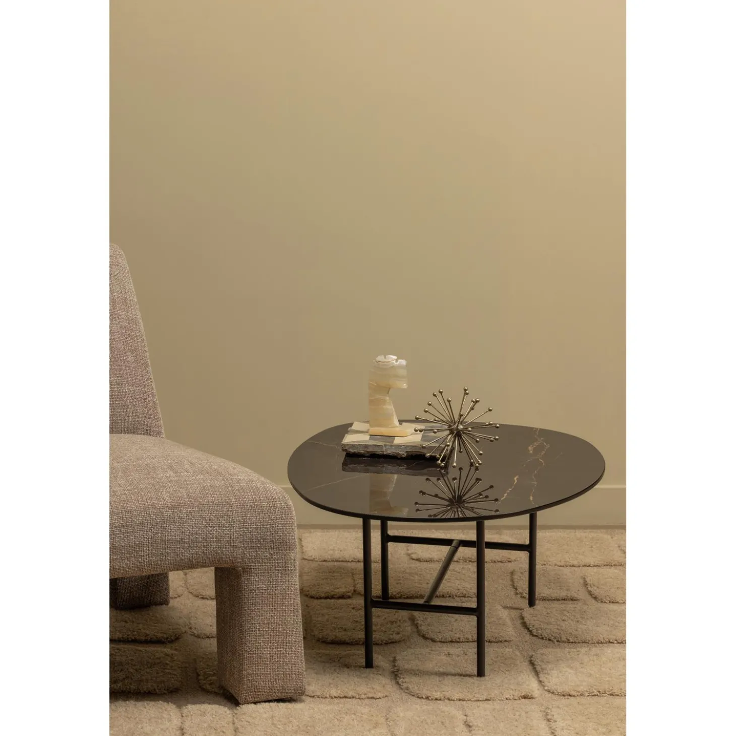 VAJEN SALONTAFEL MET ZWART MARMEREN LOOK BLAD 80X60 CM