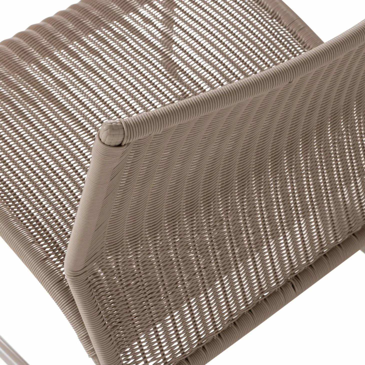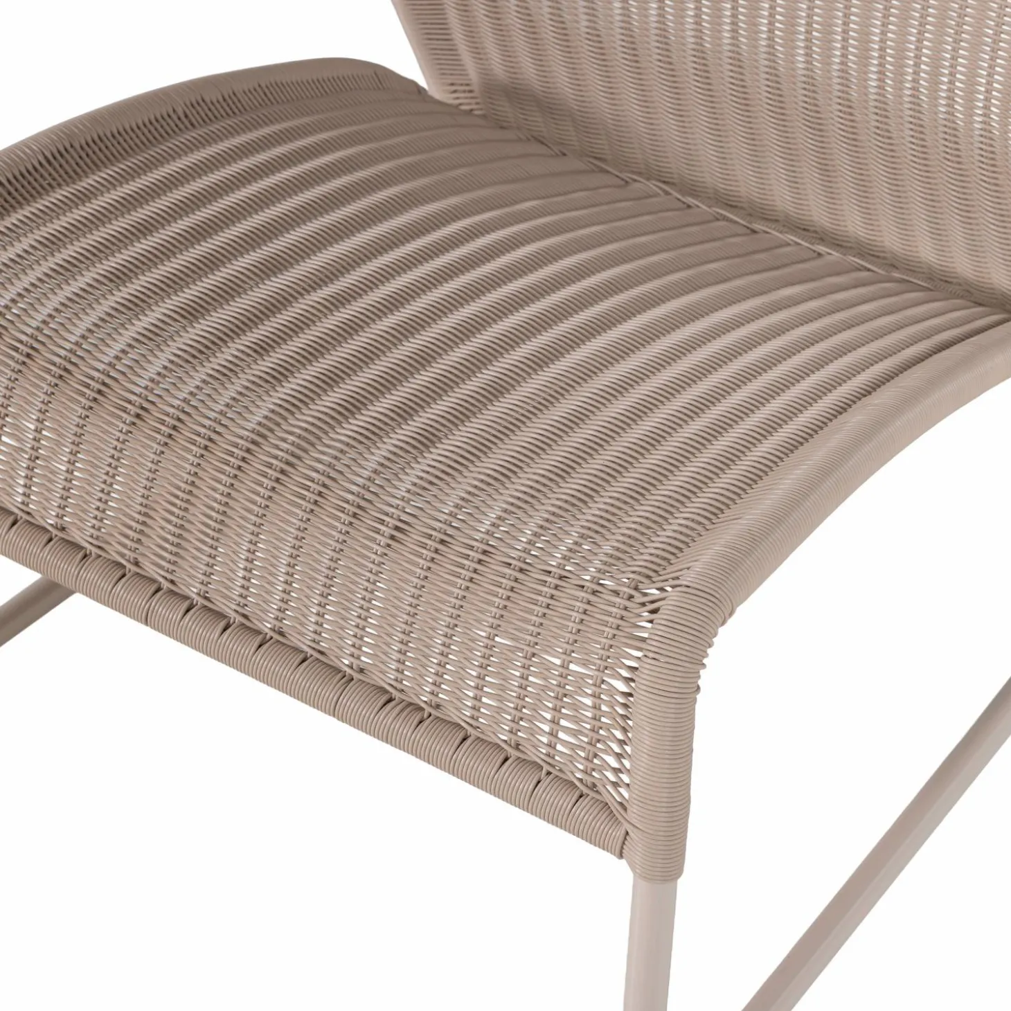 Het unieke design van deze loungestoel valt direct op door de gevlochten structuur en de elegante lijnen. De diepe, comfortabele zitting zorgt ervoor dat je volledig kunt wegzakken en relaxen. De zandkleur past mooi bij verschillende buitenstijlen en combineert goed met andere tuinmeubelen. Of je nu een moderne tuin hebt of een meer natuurlijke uitstraling zoekt, deze loungestoel voegt karakter toe aan je buitenruimte. De gevlochten details geven het design een speelse maar tijdloze uitstraling.