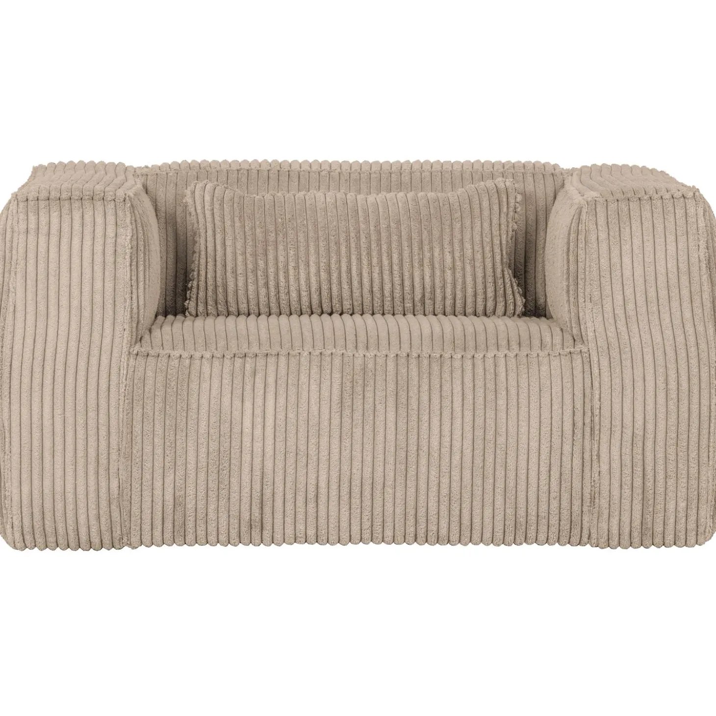 De Bean fauteuil is een ware blikvanger. Met de Bean fauteuil haal je een stoer item in huis met robuuste uitstraling. Bean staat bekend om zijn hoge zitcomfort en kwalitatieve stoffen. De uitvoering in deze superzachte ribstof (100% polyester) en de warme zand kleur geven je woonkamer direct stijl. Nóg meer zitcomfort gewenst? Voeg dan een Bean kussen in dezelfde grove ribstof toe aan de fauteuil, deze is los verkrijgbaar.
