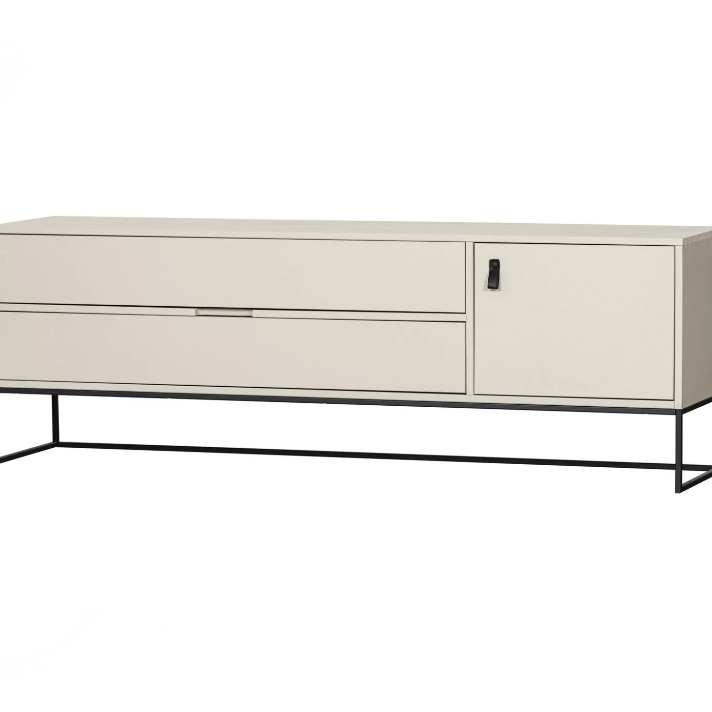 Het tv meubel 120 cm heefttwee lades hebben met een breedte van 61 cm en een hoogte van 13 cm. Het kastje aan de rechterzijde beschikt over één legplank (van spaanplaat) en wordt afgesloten met een deur (H37xB50 cm) met leren handgreep. Het tv meubel 180 cm breed heeft twee lades hebben met een breedte van 121 cm en een hoogte van 13 cm. Het kastje aan de rechterzijde beschikt over één legplank (van spaanplaat) en wordt afgesloten met een deur (H41xB50 cm) met leren handgreep.Dit meubel is voorzien van een gat voor kabels, bedrading en dergelijke. Wel zo praktisch!