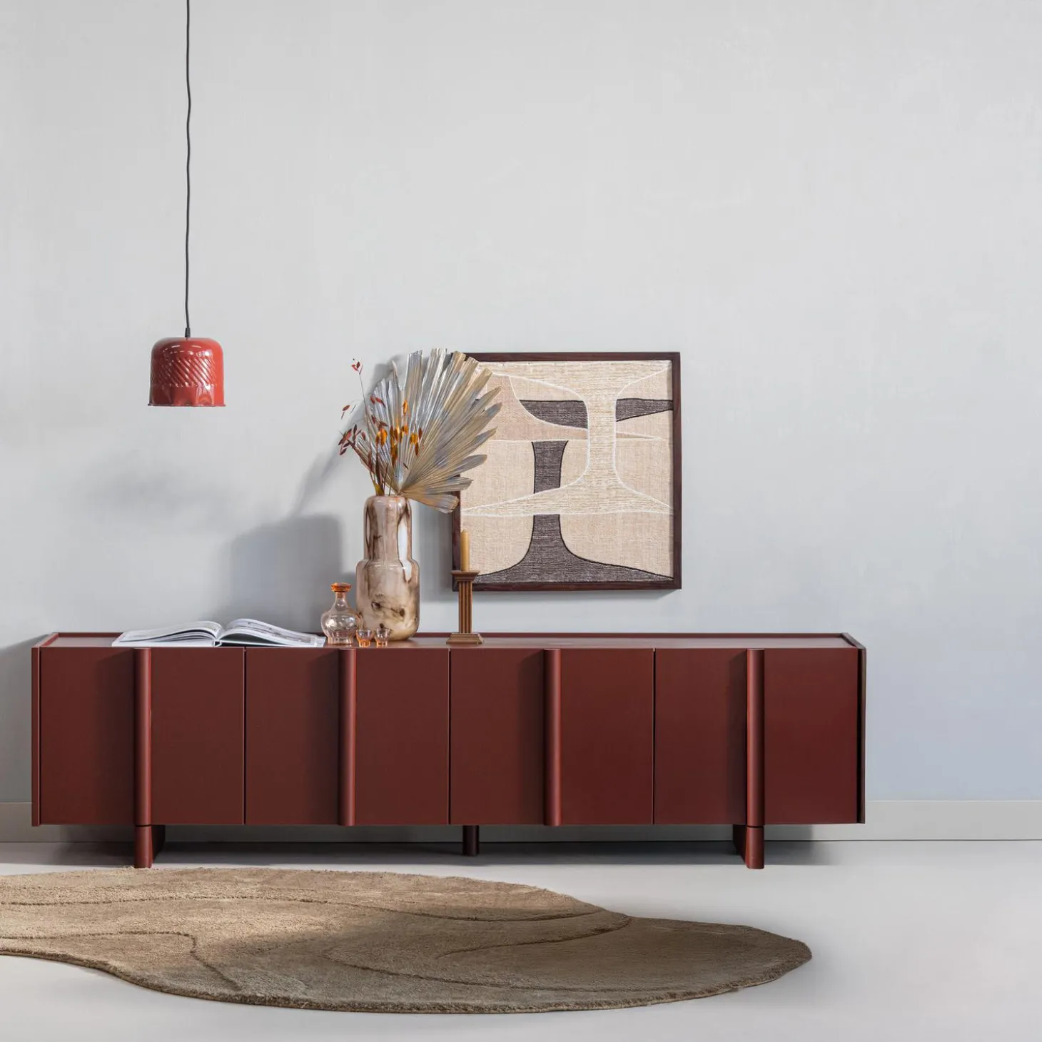 Outlet WOOOD Basu Tv Meubel 200 Cm Grenen Bordeauxrood