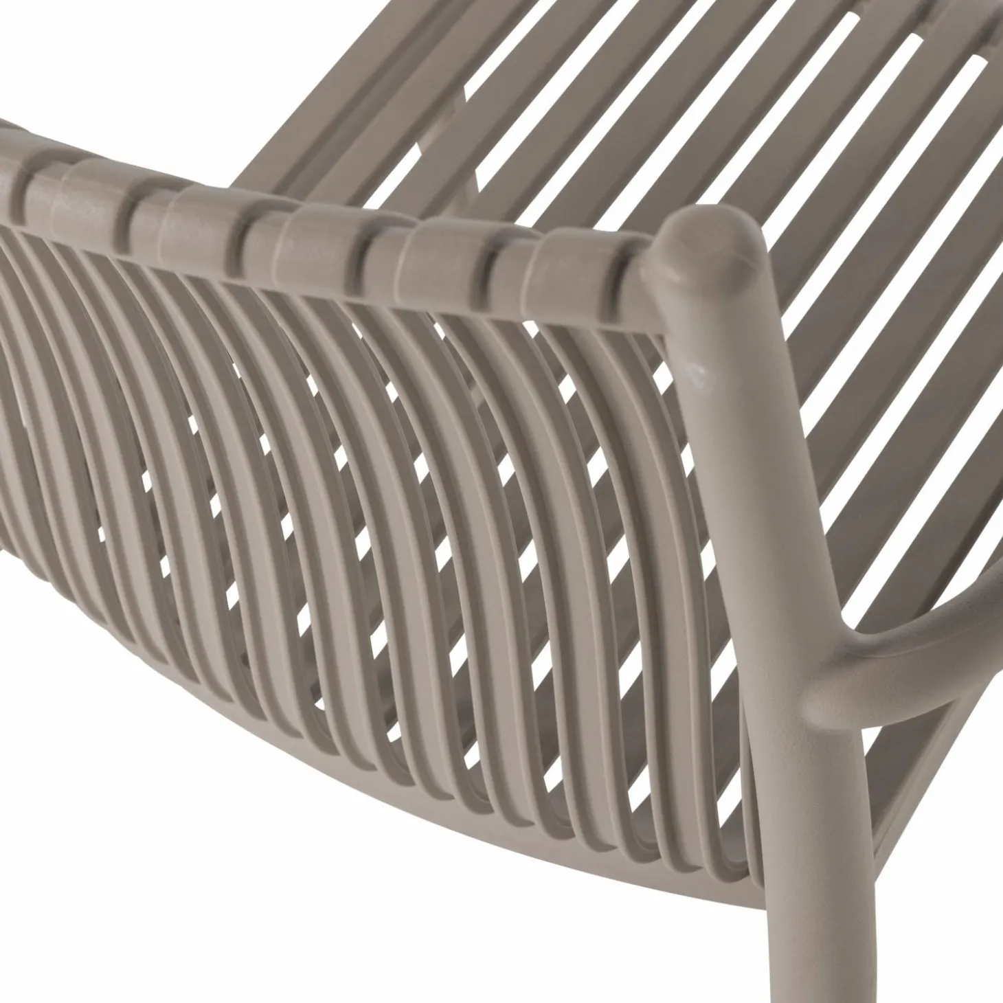 Het minimalistisch design van deze tuinstoel zorgt voor een rustige uitstraling in jouw buitenruimte. De strakke lijnen en eenvoudige vormgeving maken dat de stoel goed past bij verschillende tuinstijlen. De zand kleur geeft een neutrale basis die mooi combineert met andere tuinmeubels en accessoires. Door het tijdloze ontwerp blijft de stoel jarenlang mooi in jouw tuin, op het terras of balkon.