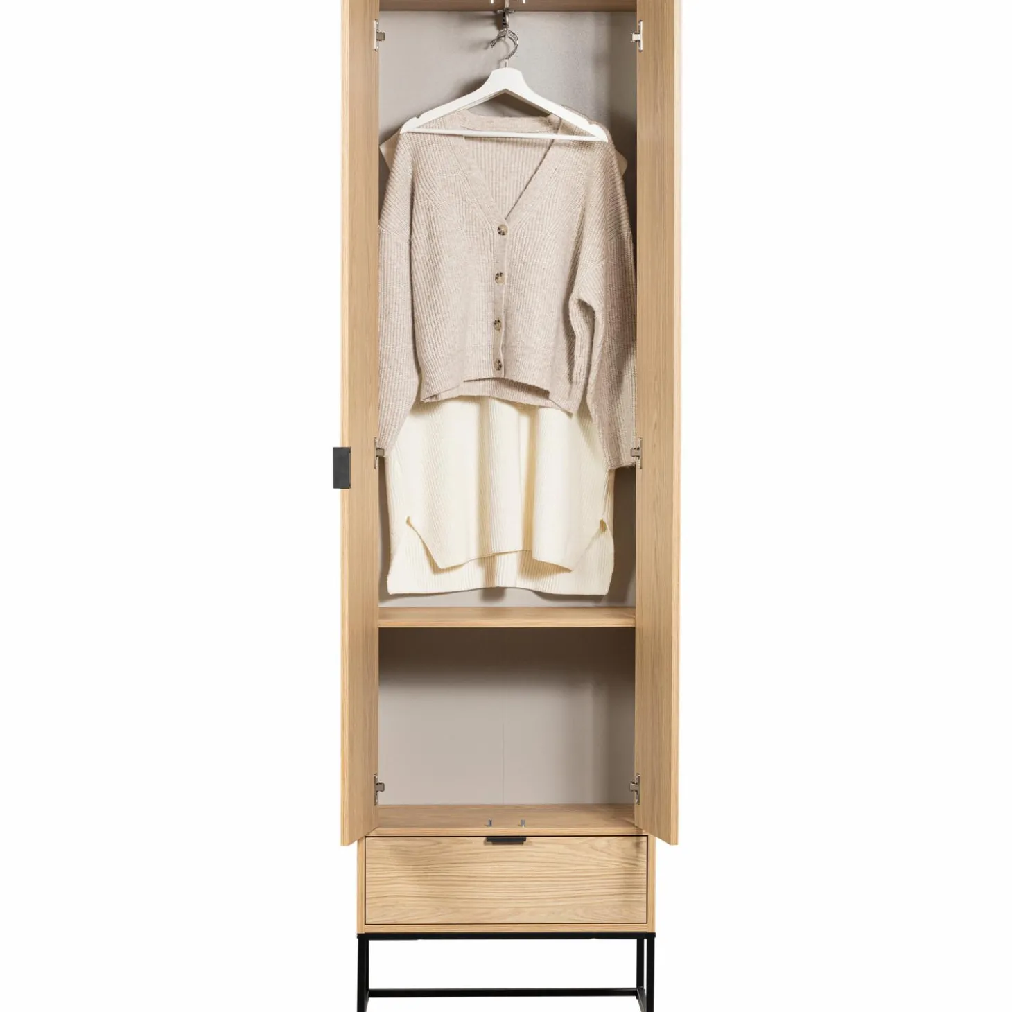 Wil je ook duidelijk overzicht in de ochtend of in de avond met het combineren van jouw outfit? Dit optiepakket van de uittrekbare kledinghanger is toepasbaar op de hoge kledingkasten Silas van WOOOD. Benut de ruimte maximaal, want met deze uitschuifbare kledinghanger trek je gemakkelijk je kleding via een railing uit de kast. Onhandig zoeken naar je favoriete kleding is hiermee verleden tijd!