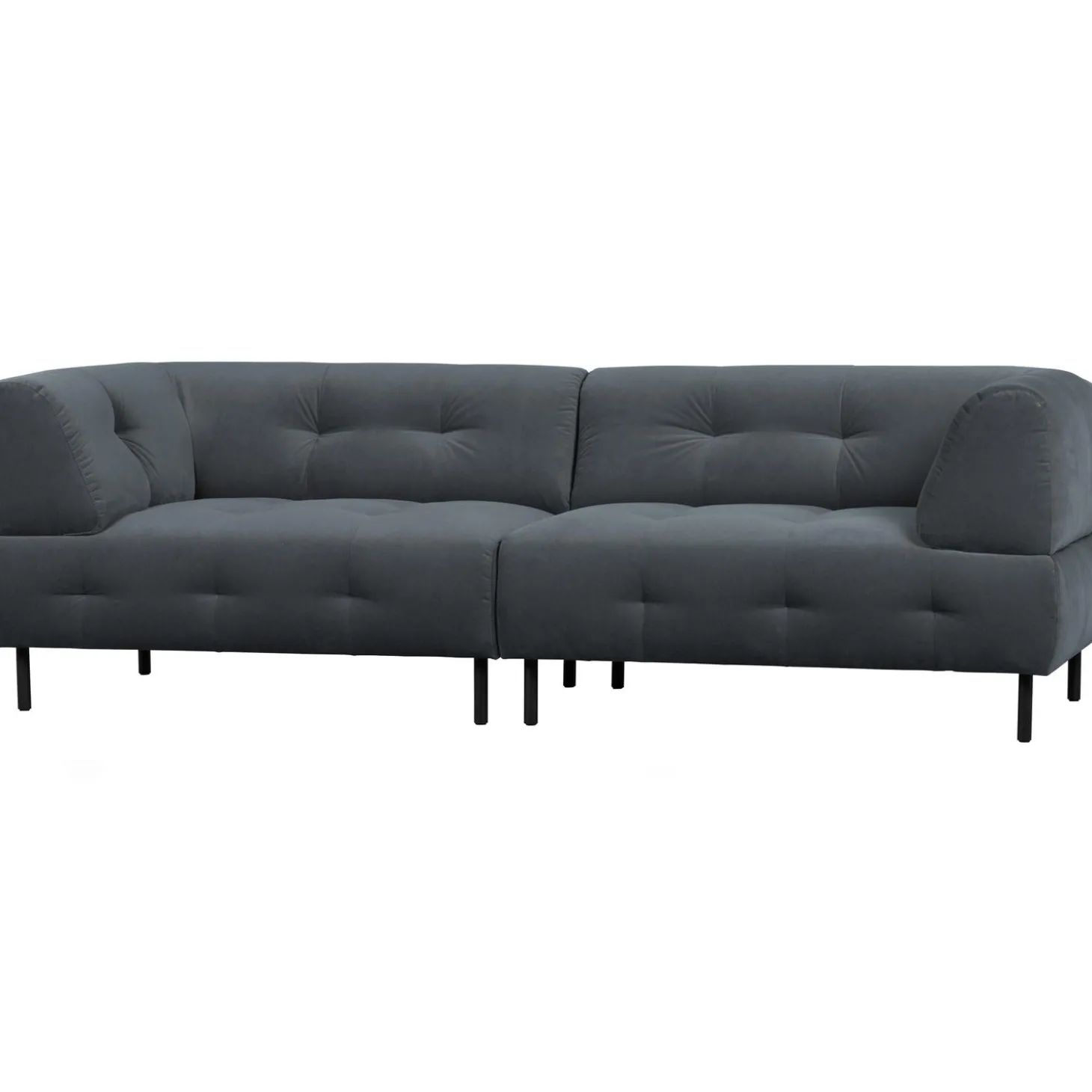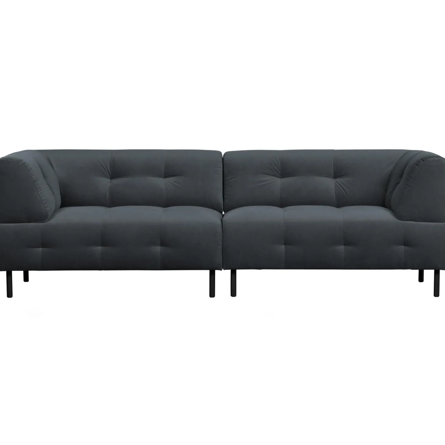 De Lloyd 4-zitsbank wordt geleverd in twee pakketten. Dankzij de voorgemonteerde verbindingshaken zijn de delen eenvoudig met elkaar te verbinden. Om harde vloeren te beschermen, wordt aanbevolen viltglijders (Ø 2 cm) onder de poten te plaatsen.