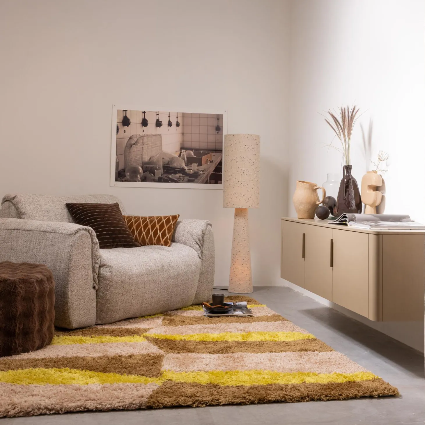 De Loft vloerlamp metaal/bouclé naturel met stippen (130 x Ø 30 cm) wordt jouw nieuwe interieur statement.