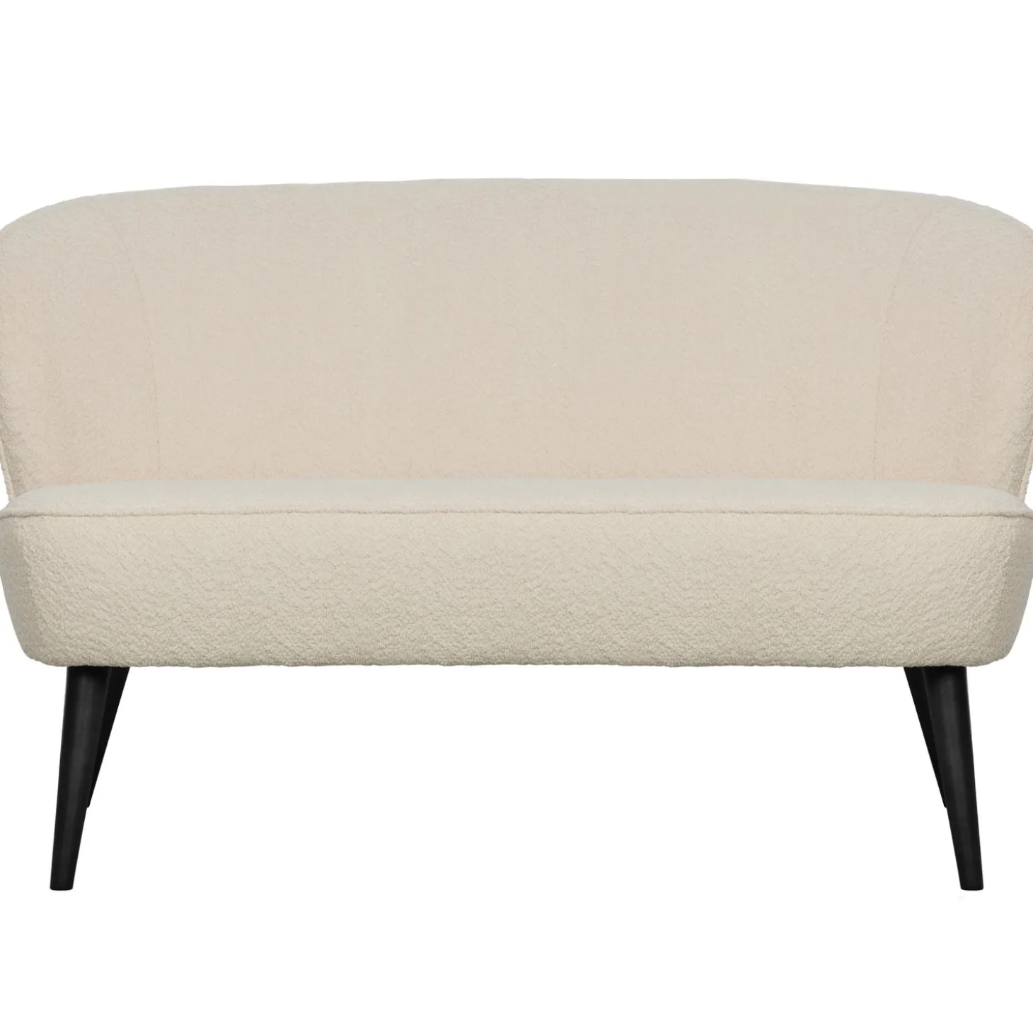 Sara is bekleed met een wollige bouclé. Onze zachte Almón bouclé heeft een elegante textuur die meteen warmte in huis brengt. De bouclé stof heeft een Martindale van 60.000, dat betekent dat de stof geschikt is voor redelijk intensief gebruik. De dichte weeftechniek zorgt voor de sterkte van de stof, dit maakt dat de Almón bouclé niet snel zal slijten of scheuren. Ook heeft elke kleur een hoge kleurvastheid, maar het is aangeraden om direct zonlicht te vermijden om kleurnuances te voorkomen.Het bankje heeft een zithoogte van 45 cm, een zitbreedte van 110cm en een zitdiepte van 53 cm. De rugleunign heeft een hoogte van 28cm vanaf de zitting gezien. Het max. draaggewicht is 100 kg.