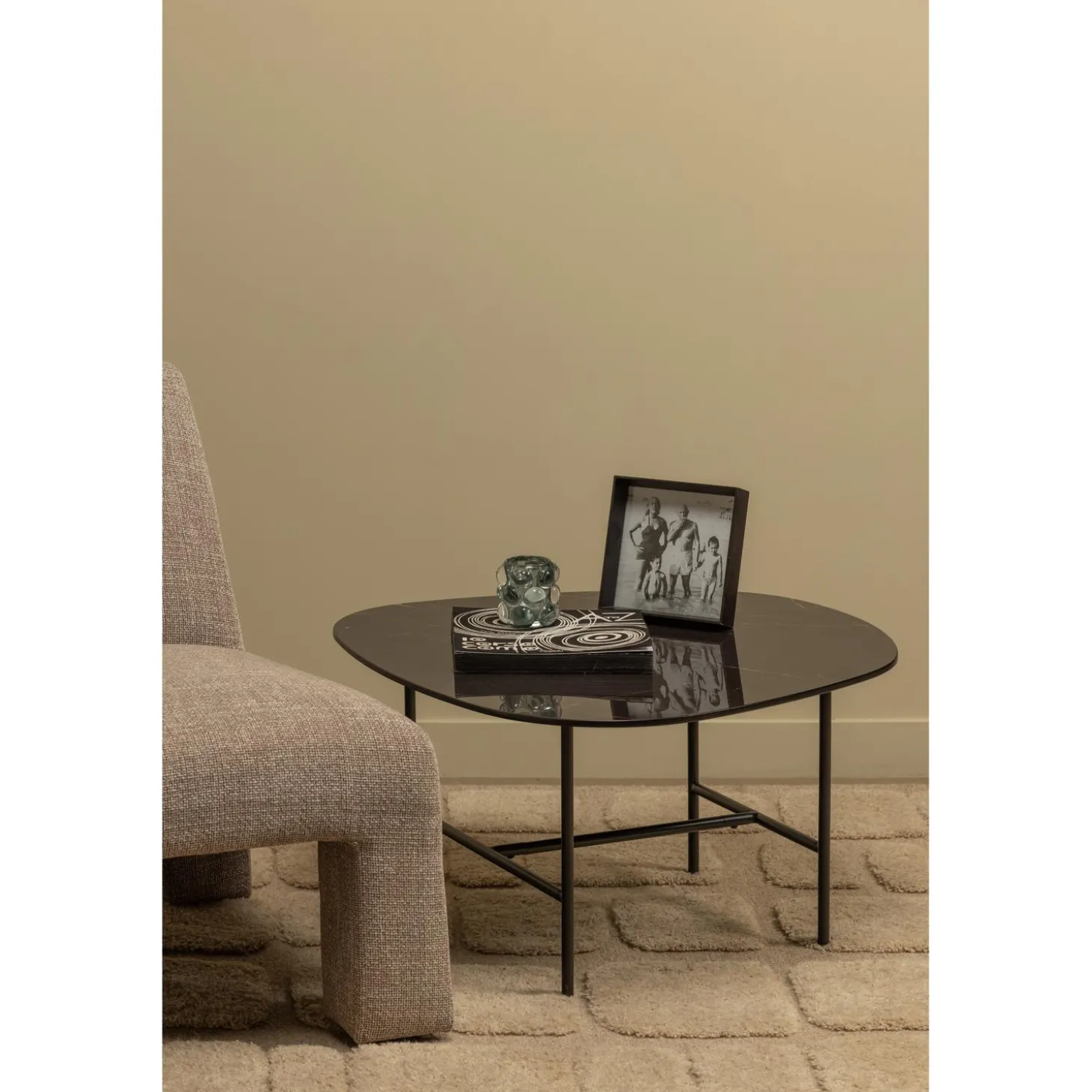 VAJEN SALONTAFEL MET ZWART MARMEREN LOOK BLAD 70X70 CM