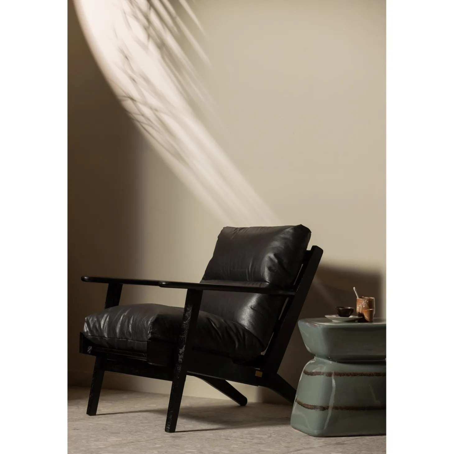 HOUSTON FAUTEUIL LEER/HOUT ZWART
